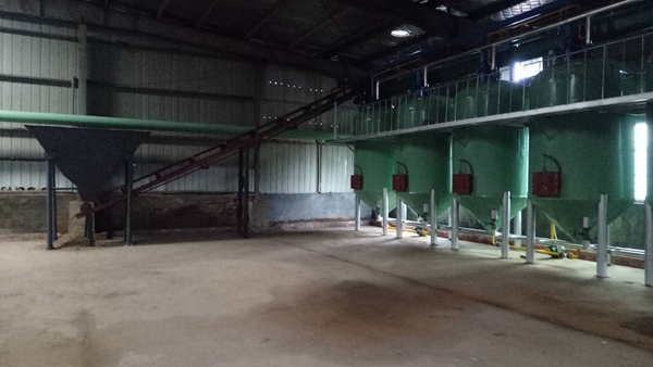 將收購(gòu)的原料(含油廢白土)經(jīng)白土造粒機(jī)擠壓造粒,(如果含油白土水分超過(guò)15%的話造粒機(jī)后邊還需要增加一臺(tái)白土烘干機(jī))。